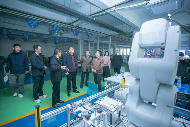 宋俊驥深入青山湖校區汽車實訓室、數控實訓室、工業機器人實訓室、物聯網實訓室等實訓場所調研,詳細了解實訓室功能定位、設備管理與使用以及未來規劃情況。