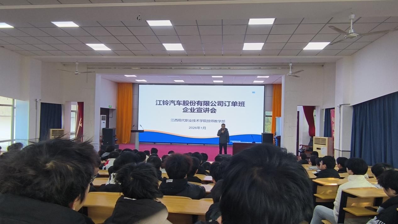 為深化產教融合、校企合作,創新“訂單式”人才培養模式,為學生搭建直通優質企業的成長平臺,2026年1月9日,江西現代職業技術學院技師教學部在青山湖校區成功舉辦了江鈴汽車訂單班專場宣講會,宣講會由招生就業與實訓服務工作負責人肖承錢主持。