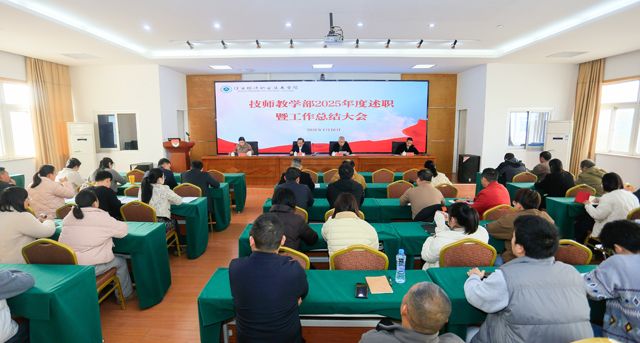 1月16日下午,技師教學部在圖書館多功能廳召開2025年度述職暨工作總結大會。技師教學部班子成員、各黨支部、辦公室、教研室負責人,駐青山湖校區各部門負責人以及青山湖校區教職工代表50人參加會議,會議由技師教學部招生就業與實訓服務工作負責人肖承錢主持。