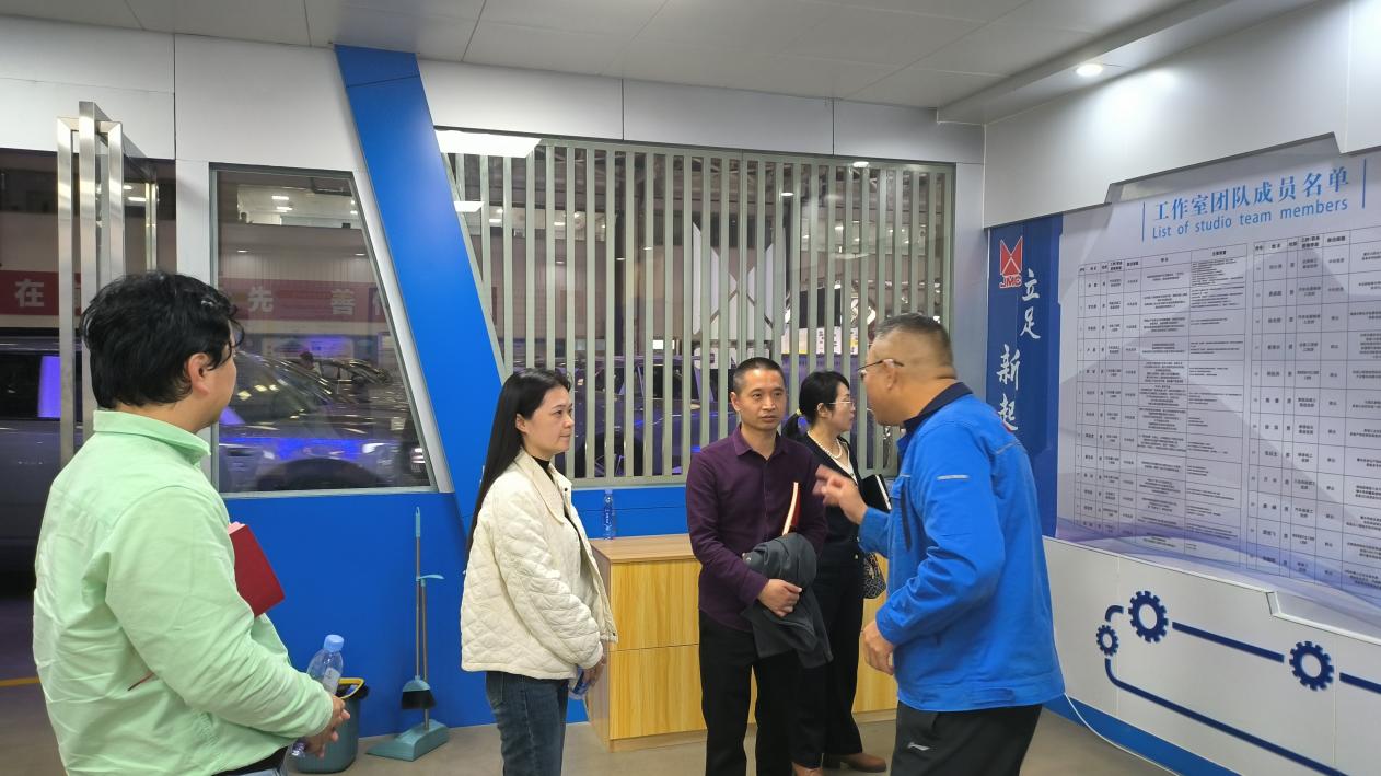 隨后,考察組實地參觀了江鈴富山工廠的整車生產車間和熊懿技能大師工作室。工廠技術人員詳細講解了自動化生產線的流程、智能裝配工藝以及嚴格的質量管控體系,生動展示了從沖壓、焊裝到總裝的全流程智能化制造實景。在技能大師工作室,雙方圍繞新能源汽車、智能網聯技術等前沿領域進行了深入交流,熊懿大師分享了相關技術的最新研發成果及其市場應用情況。